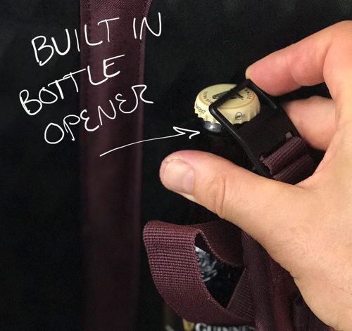 Unexpected but functional features include a strap buckle that can serve as a bottle opener (this is the company of Swiss Army Knife fame, after all) and a whistle built in to the sternum strap buckle.